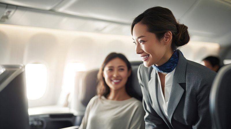 Friendly flight attendant assisting passenger https://www.rawpixel.com/image/24288849/friendly-flight-attendant-assisting-passengerView license