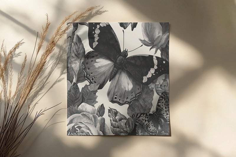 Monochrome butterfly floral artwork mockup psd https://www.rawpixel.com/image/21642293/monochrome-butterfly-floral-artwork-mockup-psdView license
