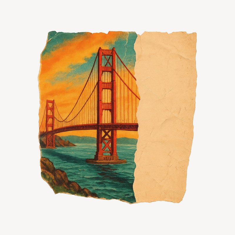 PNG Vintage Golden Gate Bridge illustration. https://www.rawpixel.com/image/25423553/png-vintage-golden-gate-bridge-illustrationView license