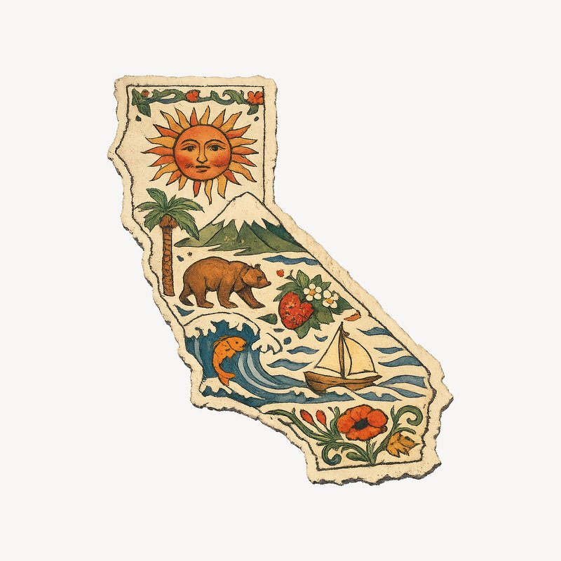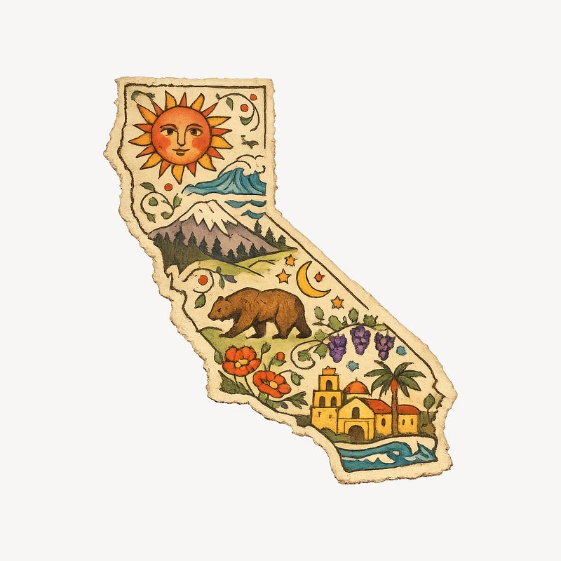 California symbols vintage illustration. https://www.rawpixel.com/image/25531153/california-symbols-vintage-illustrationView license