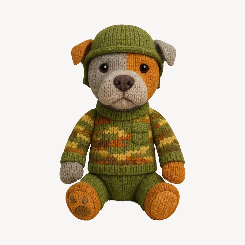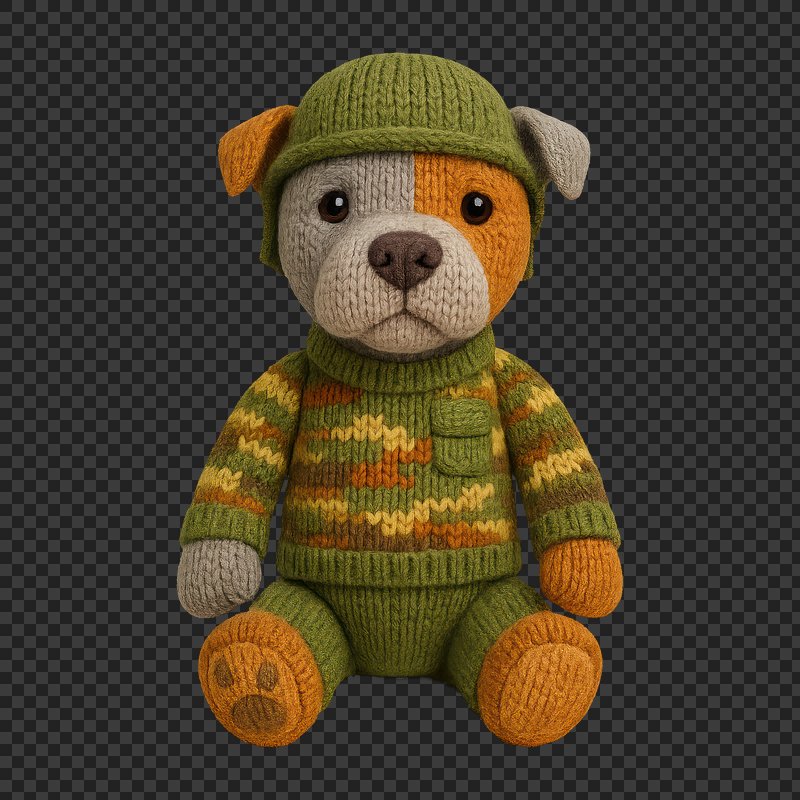 PNG Cute knitted soldier dog toy https://www.rawpixel.com/image/24521968/png-cute-knitted-soldier-dog-toyView license