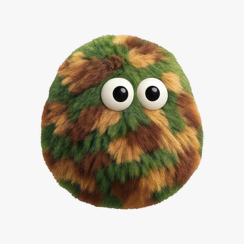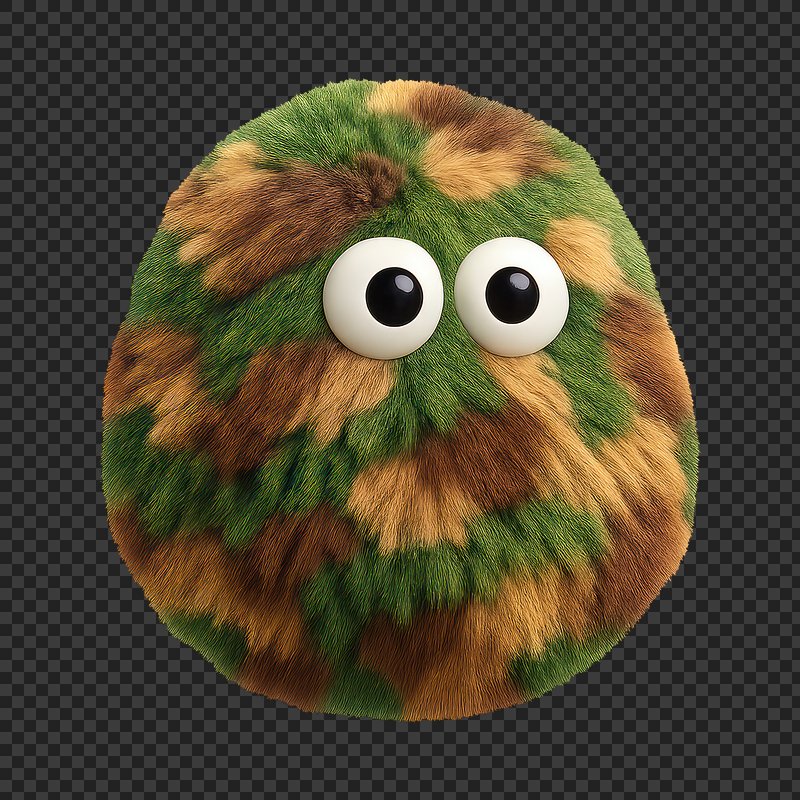 Furry camouflage sphere with eyes. https://www.rawpixel.com/image/24712652/furry-camouflage-sphere-with-eyesView license