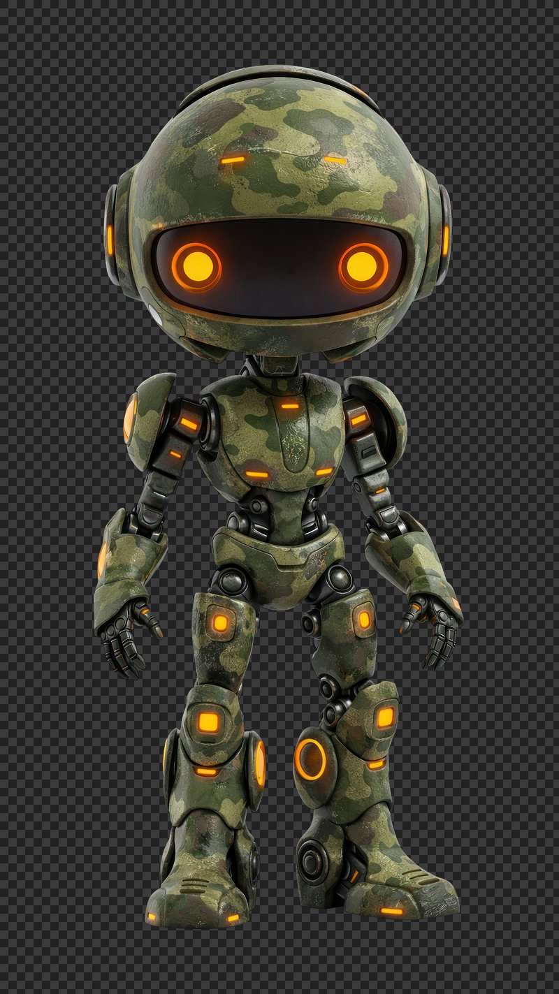 PNG Camouflage robot with glowing eyes. https://www.rawpixel.com/image/25620084/png-camouflage-robot-with-glowing-eyesView license