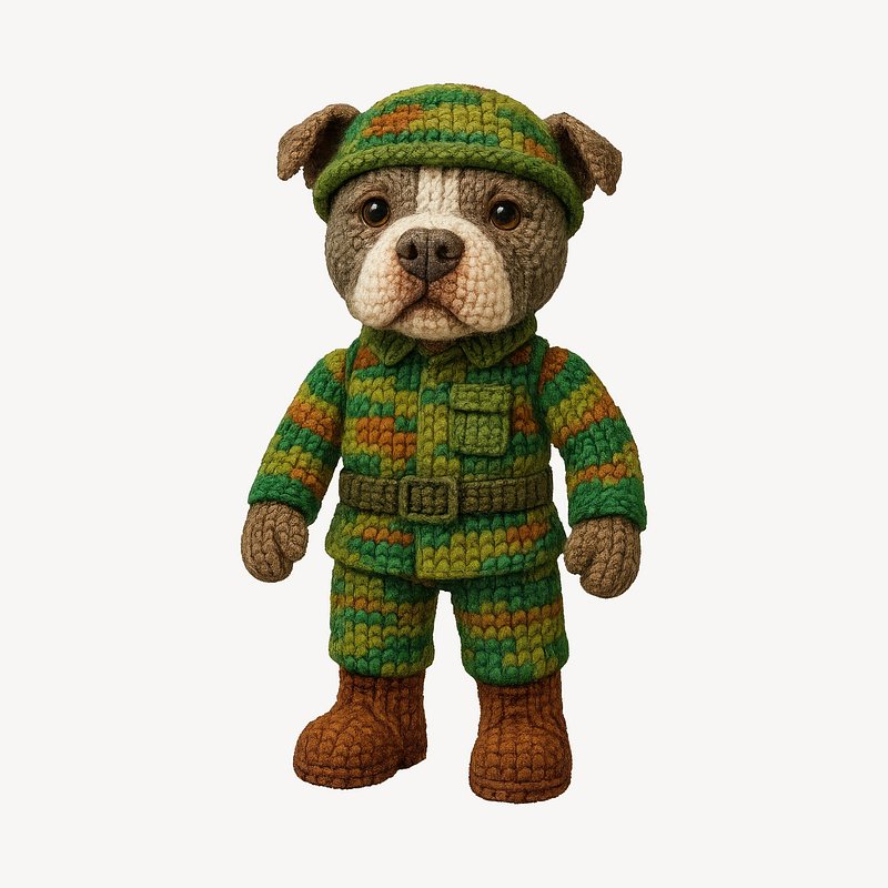 Crocheted dog soldier toy https://www.rawpixel.com/image/24609706/crocheted-dog-soldier-toyView license