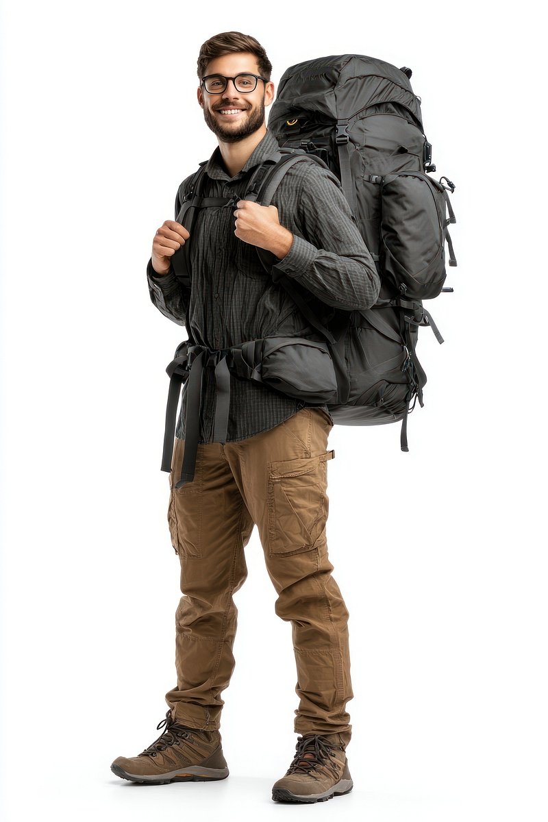 PNG Young man with hiking backpack. https://www.rawpixel.com/image/25546763/png-young-man-with-hiking-backpackView license