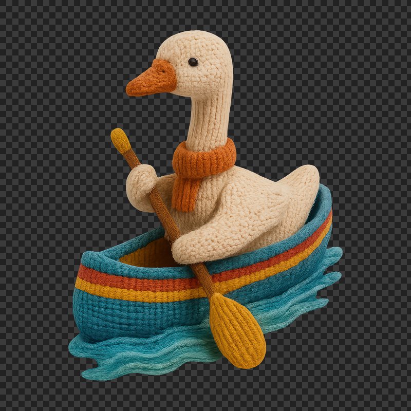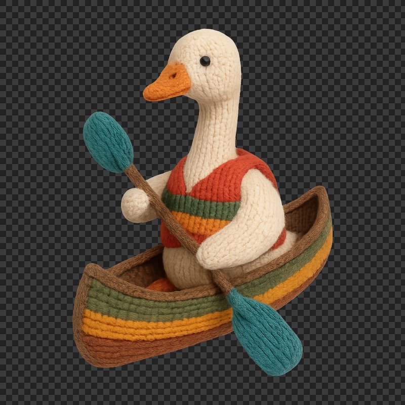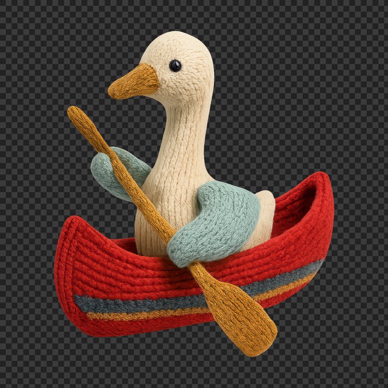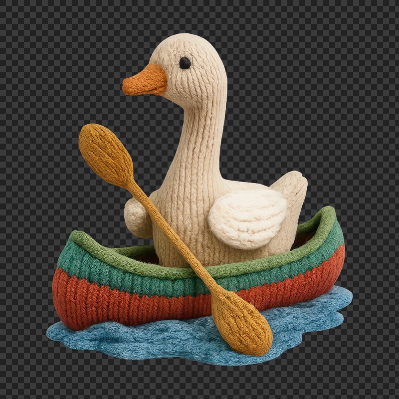 PNG Knitted duck rowing boat https://www.rawpixel.com/image/24475120/png-knitted-duck-rowing-boatView license