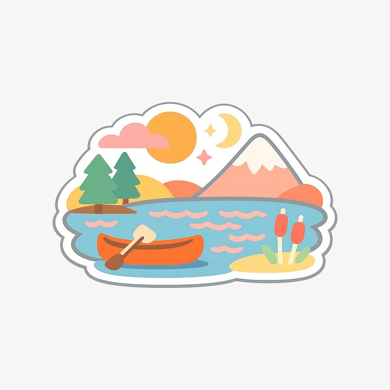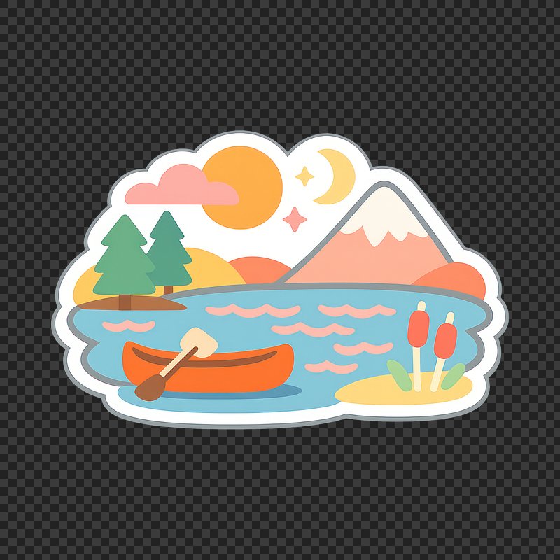 PNG Nature scene with canoe. https://www.rawpixel.com/image/25571885/png-nature-scene-with-canoeView license
