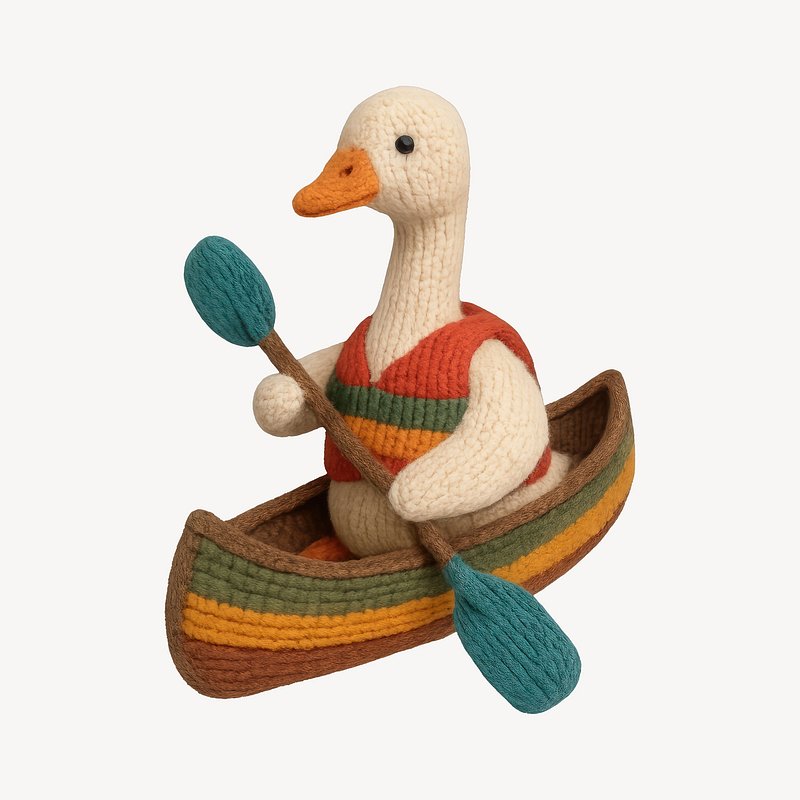 Whimsical knitted duck canoeing. https://www.rawpixel.com/image/24659784/whimsical-knitted-duck-canoeingView license