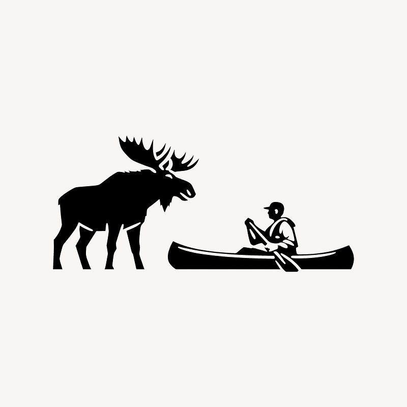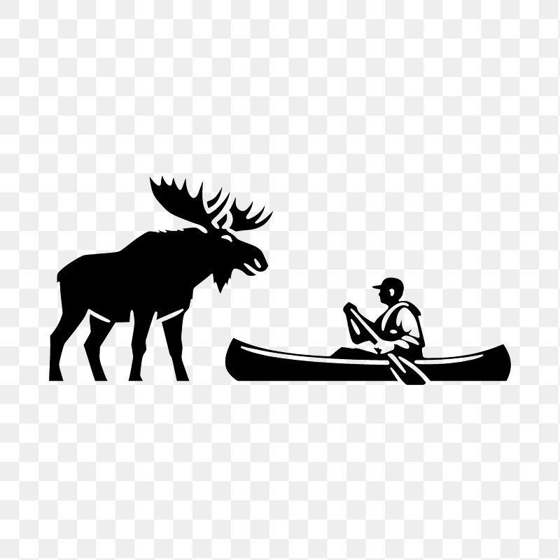PNG Moose meets canoeist silhouette https://www.rawpixel.com/image/25670866/png-moose-meets-canoeist-silhouetteView license