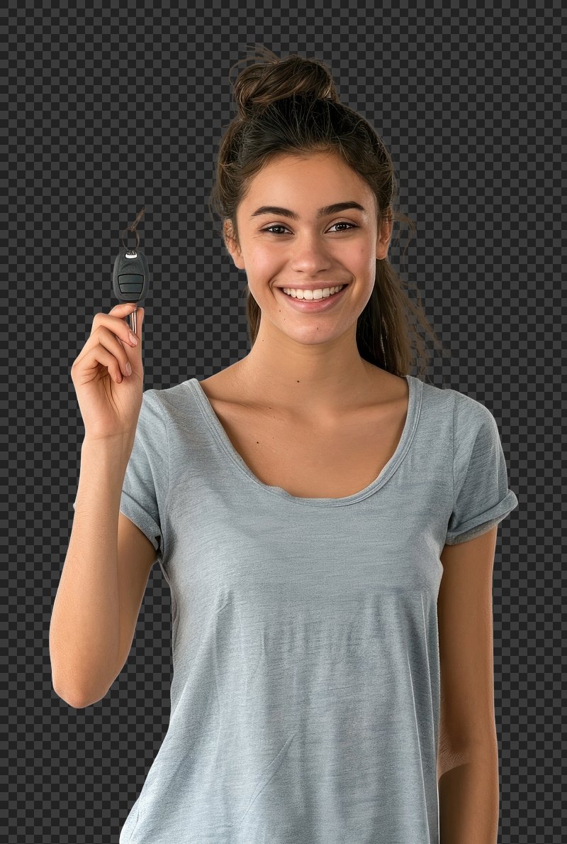 PNG Happy woman holding car key https://www.rawpixel.com/image/15349941/png-happy-woman-holding-car-keyView license