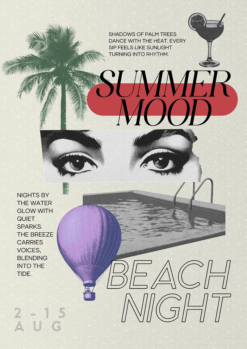 Retro summer poster with 'Summer Mood' and 'Beach Night' text template design https://www.rawpixel.com/image/22787754/retro-summer-poster-with-summer-mood-and-beach-night-text-template-designView license