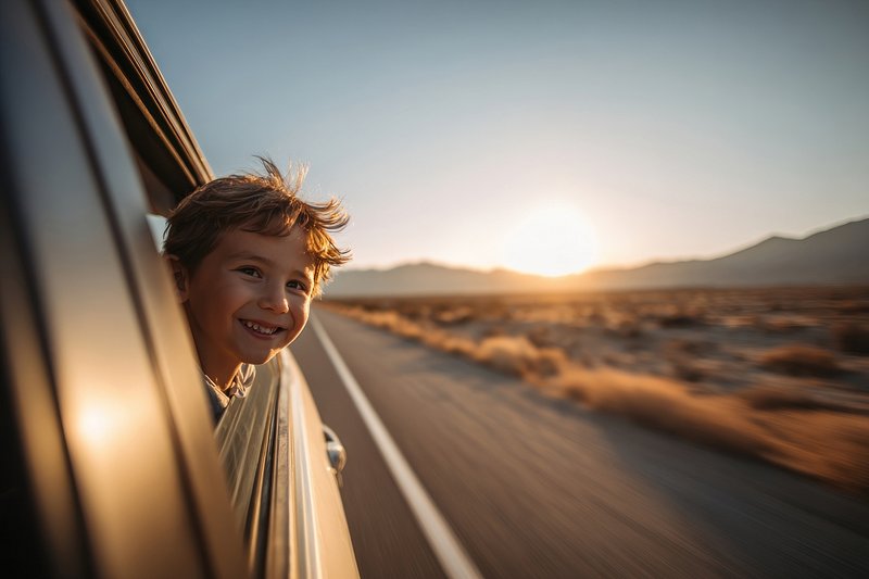 Joyful child enjoying road trip. https://www.rawpixel.com/image/25464849/joyful-child-enjoying-road-tripView license