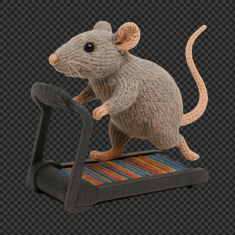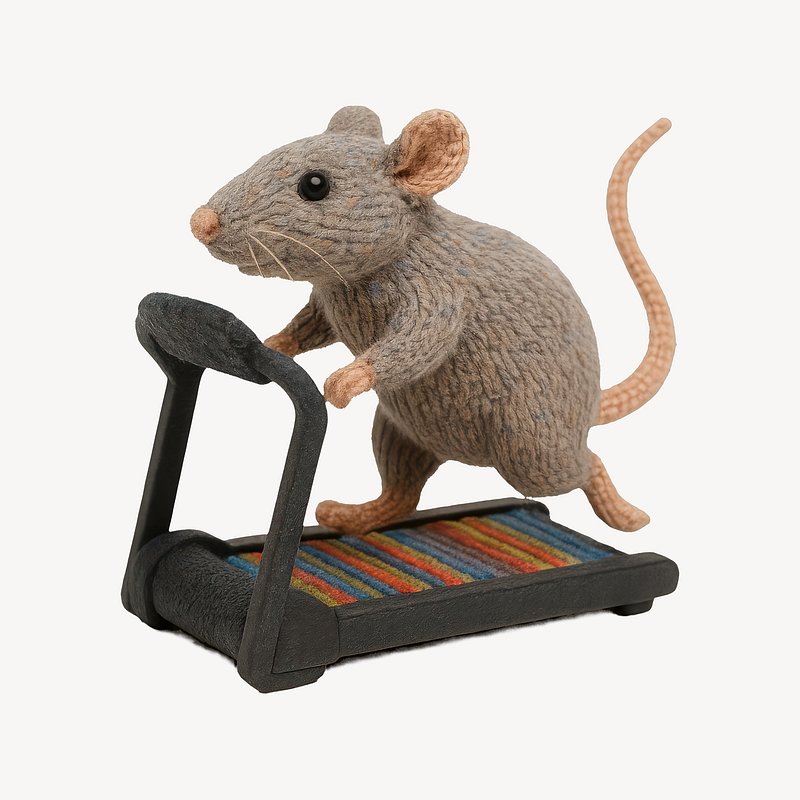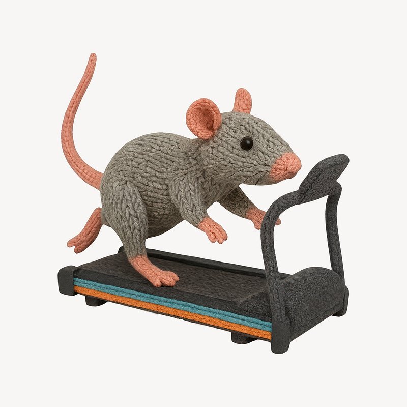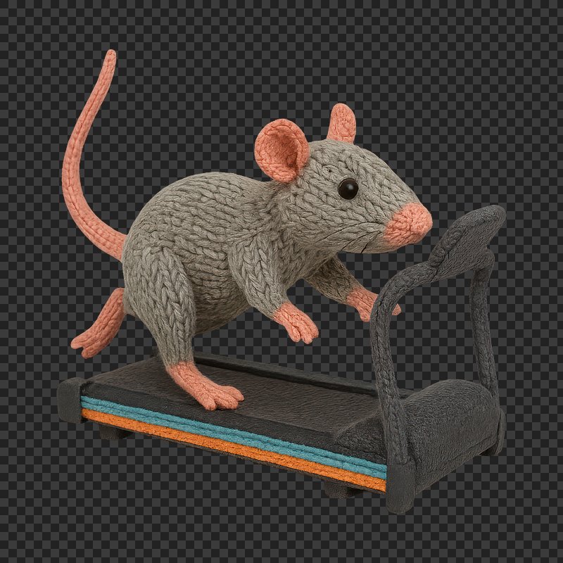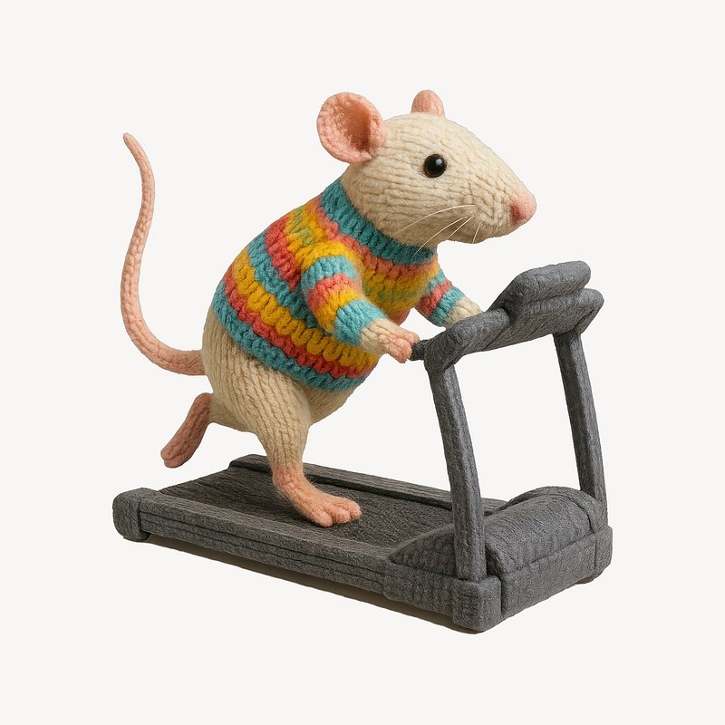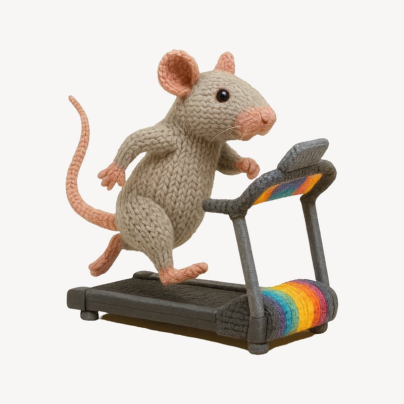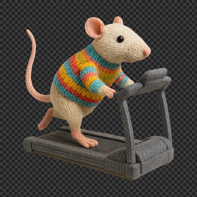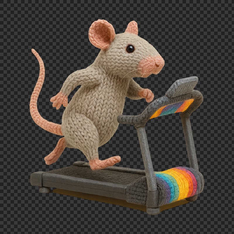 Knitted mouse exercising treadmill. https://www.rawpixel.com/image/24605082/knitted-mouse-exercising-treadmillView license