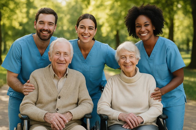 Caregivers supporting elderly outdoors. https://www.rawpixel.com/image/17342430/caregivers-supporting-elderly-outdoorsView license