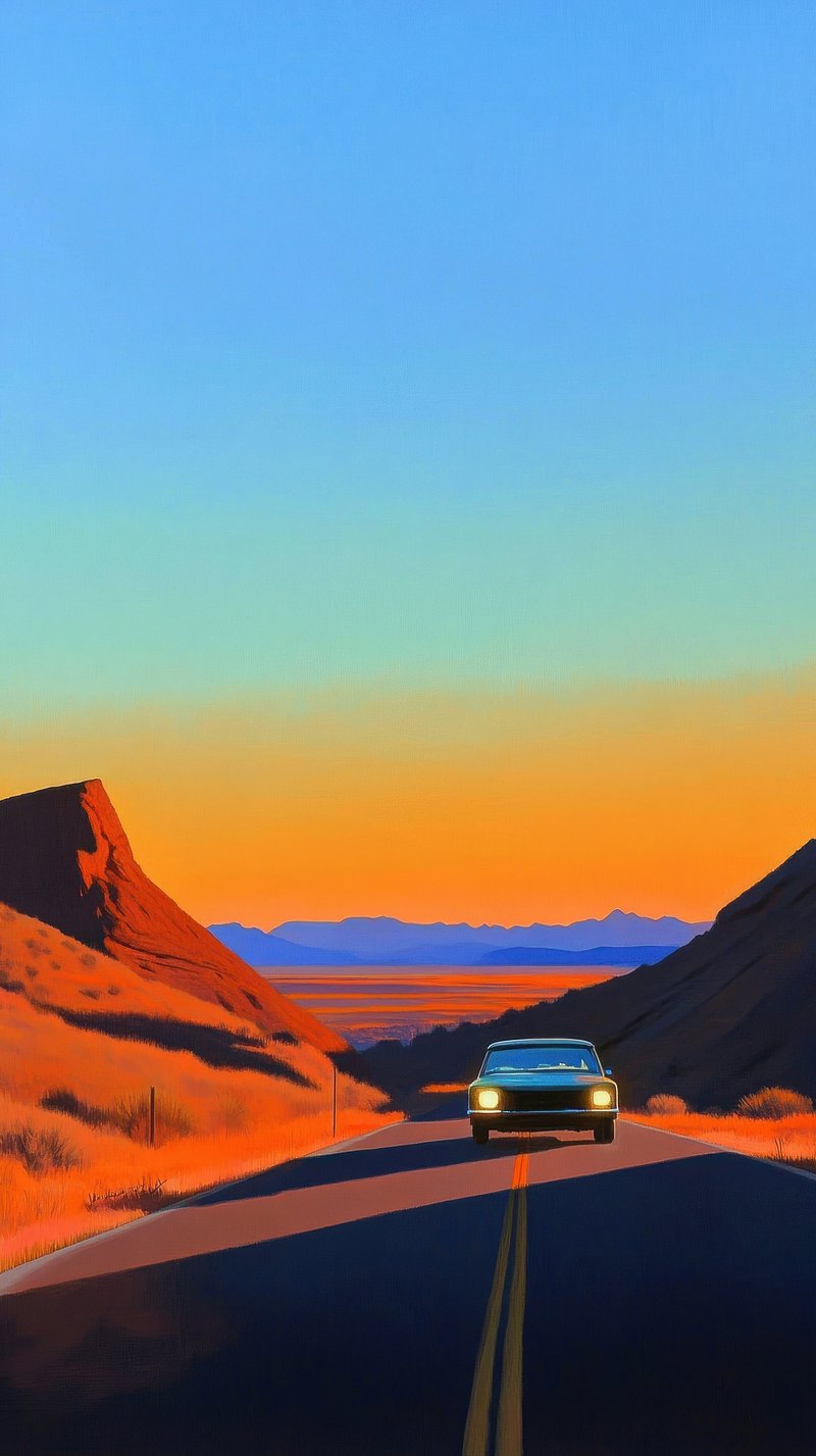 Car on the road in the desert illustration wallpaper landscape. https://www.rawpixel.com/image/16842690/car-the-road-the-desert-illustration-wallpaper-landscapeView license
