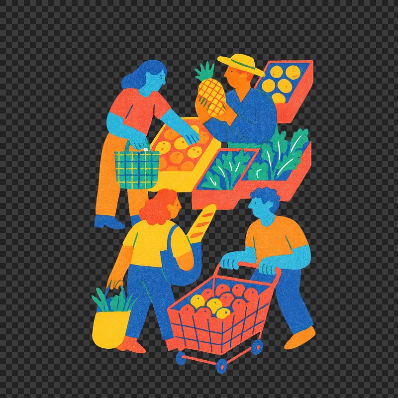 PNG Colorful market shopping illustration. https://www.rawpixel.com/image/21803813/png-colorful-market-shopping-illustrationView license