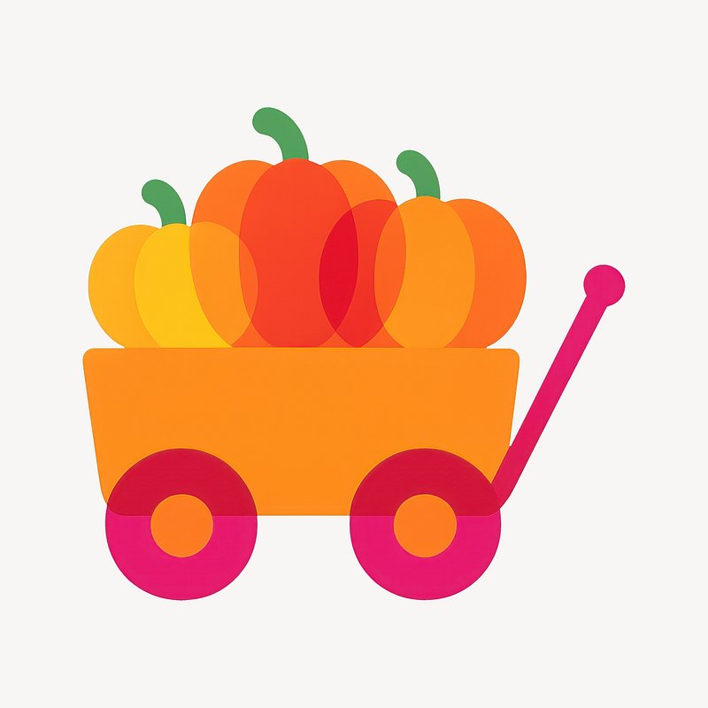Colorful pumpkins in wagon illustration. https://www.rawpixel.com/image/20595447/colorful-pumpkins-wagon-illustrationView license