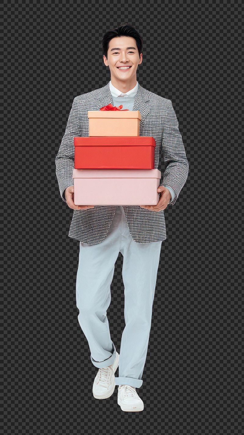 PNG Smiling man carrying gift boxes. https://www.rawpixel.com/image/20885603/png-smiling-man-carrying-gift-boxesView license