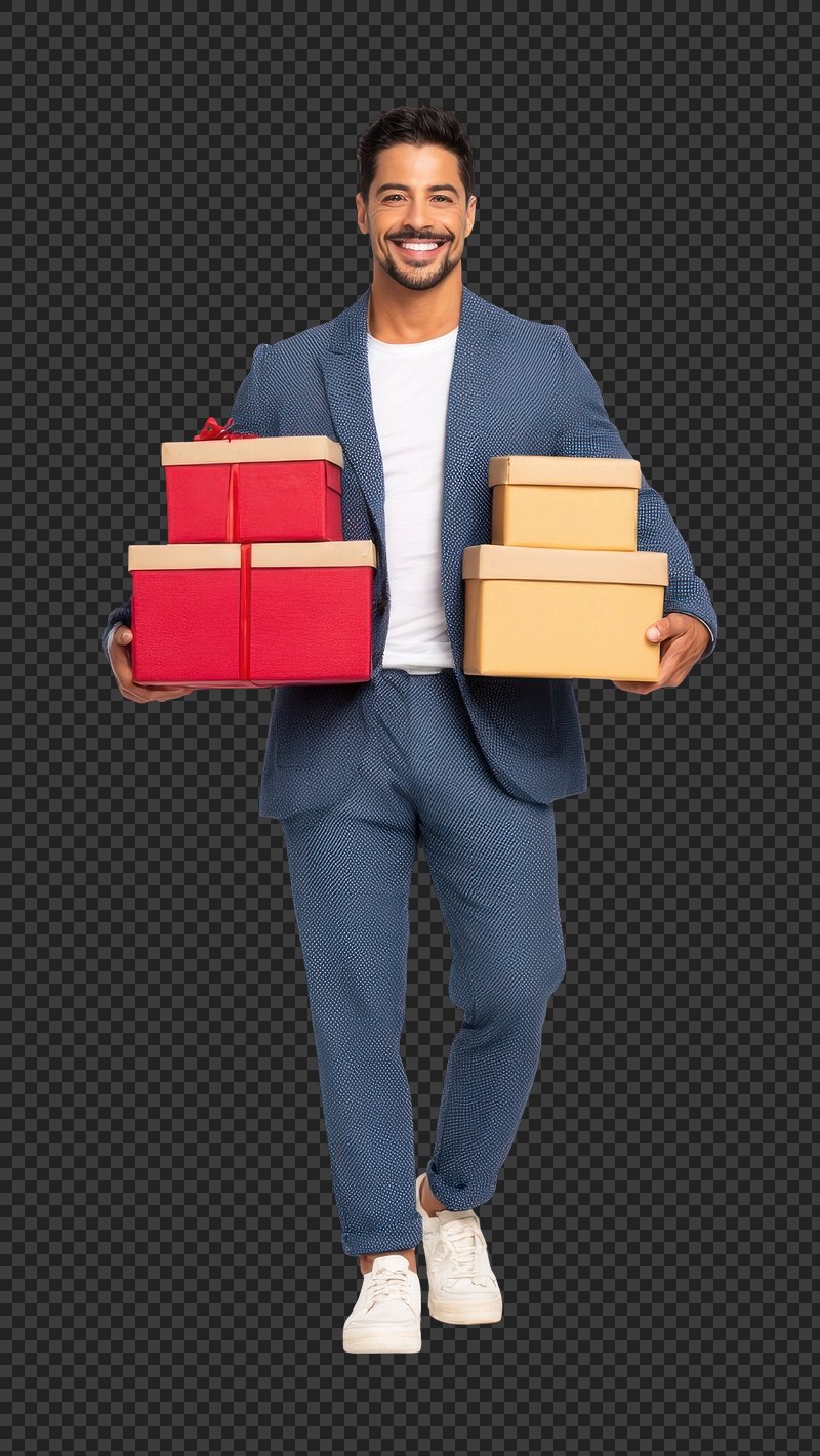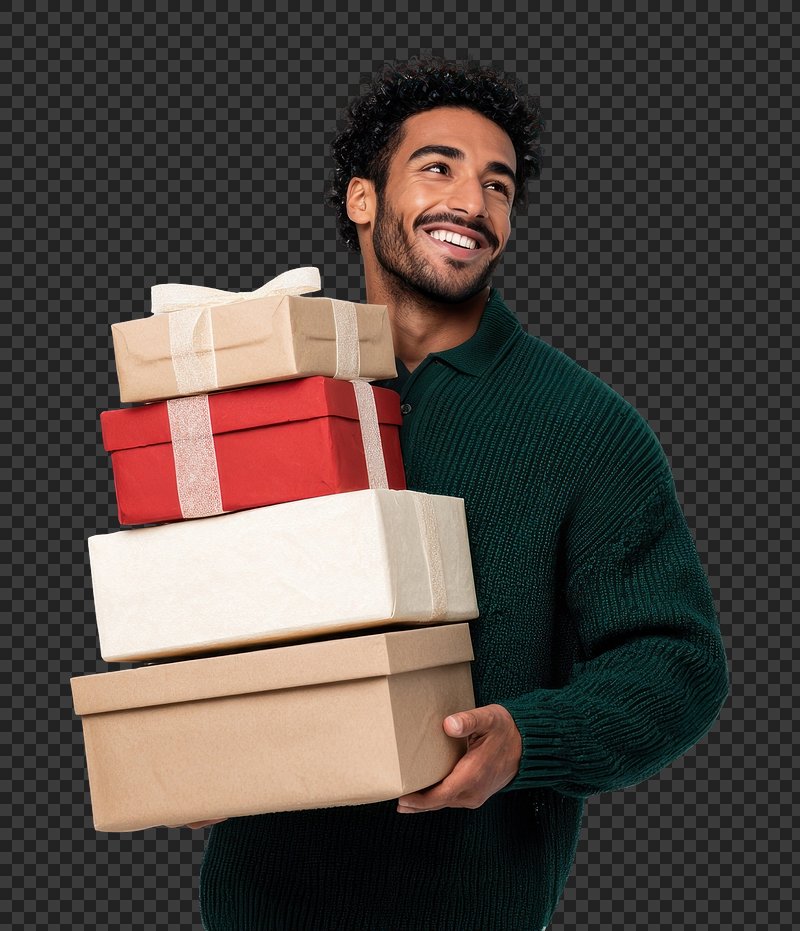 PNG Man carrying multiple gift boxes. https://www.rawpixel.com/image/20884878/png-man-carrying-multiple-gift-boxesView license