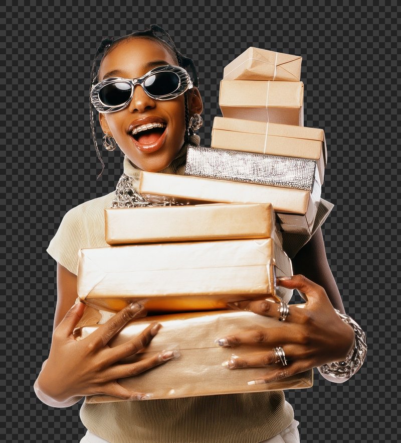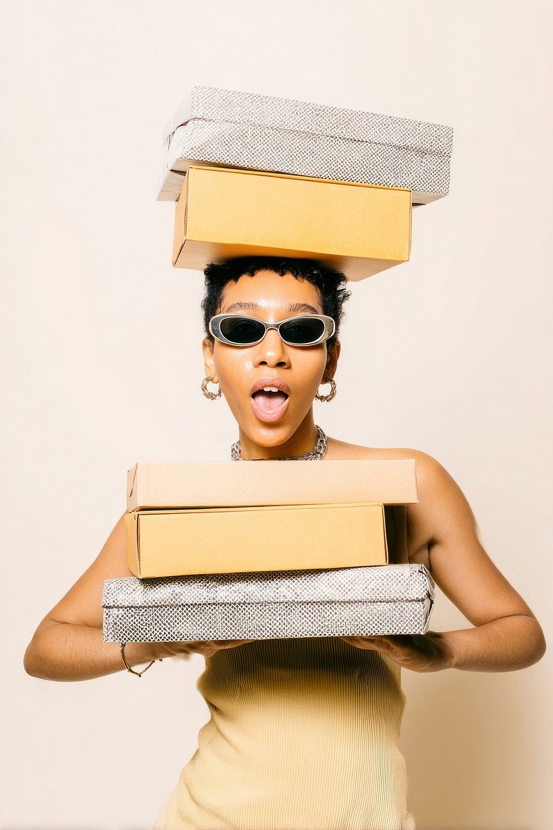 Stylish woman holding gift boxes. https://www.rawpixel.com/image/20561745/stylish-woman-holding-gift-boxesView license