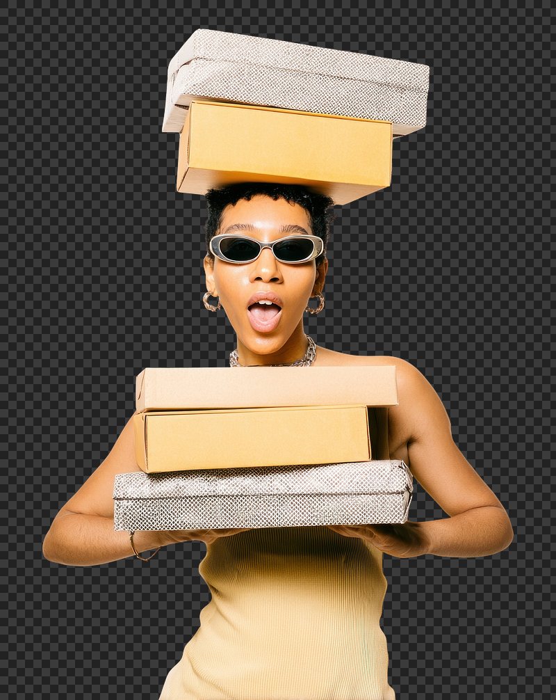 PNG Trendy woman balancing boxes https://www.rawpixel.com/image/20884370/png-trendy-woman-balancing-boxesView license