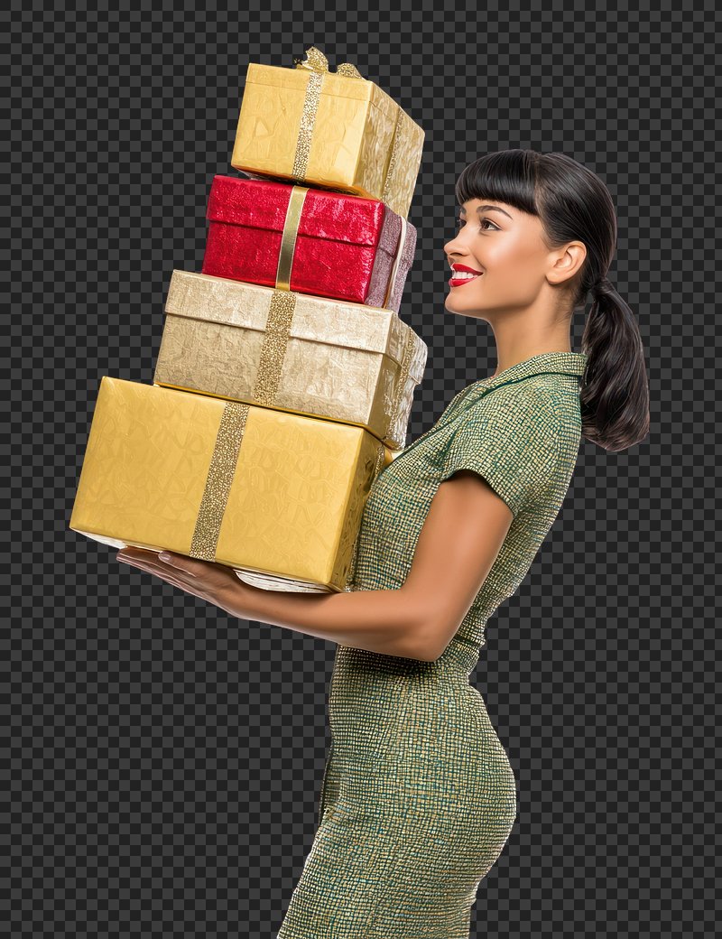 PNG Joyful woman holding gift boxes https://www.rawpixel.com/image/20890204/png-joyful-woman-holding-gift-boxesView license