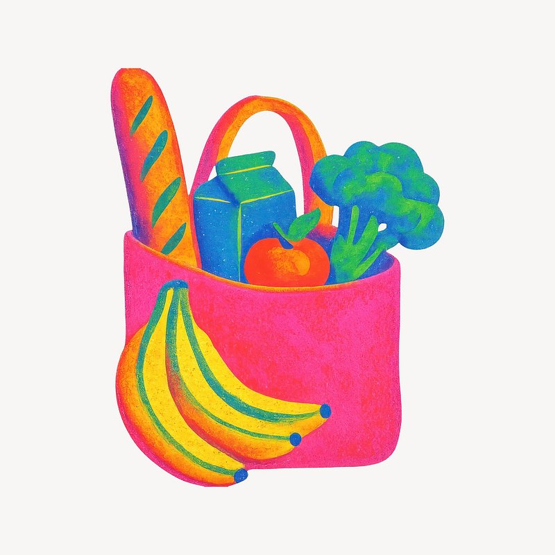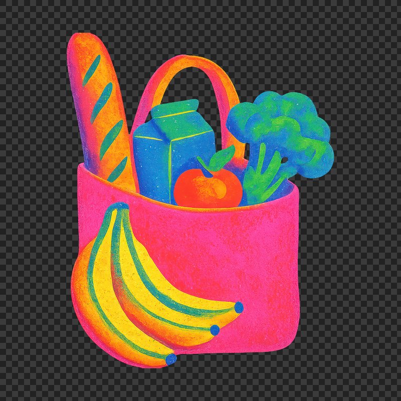 Colorful grocery bag illustration https://www.rawpixel.com/image/21350415/colorful-grocery-bag-illustrationView license