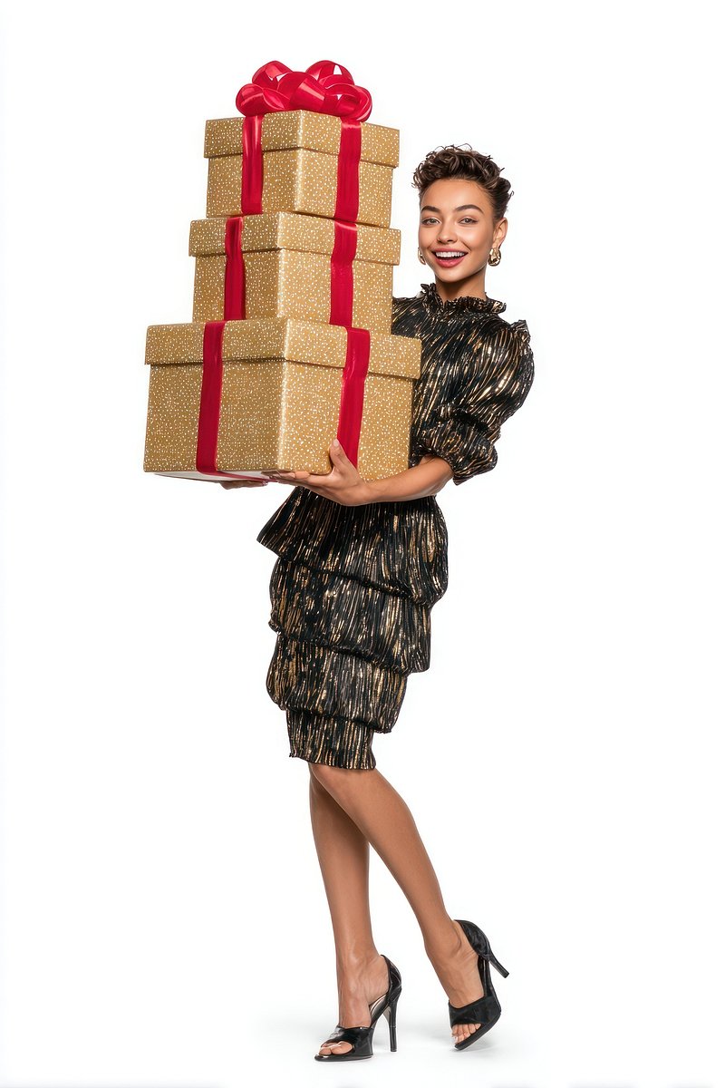 Elegant woman holding gift boxes. https://www.rawpixel.com/image/20759780/elegant-woman-holding-gift-boxesView license
