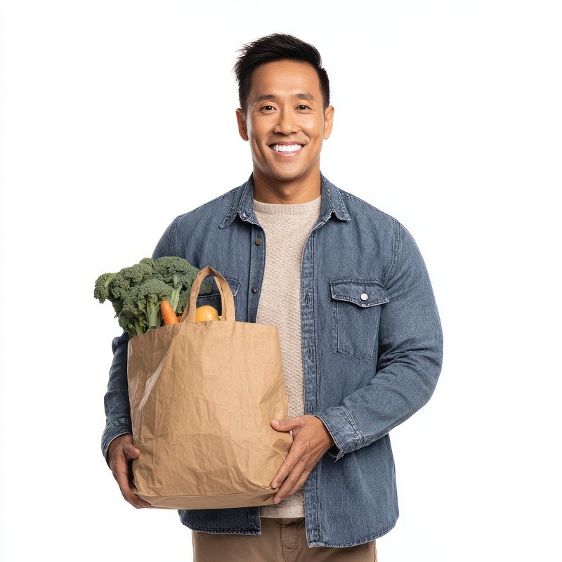 Man holding grocery bag. https://www.rawpixel.com/image/20376111/man-holding-grocery-bagView license