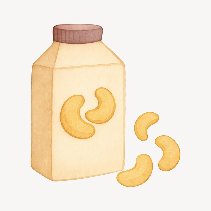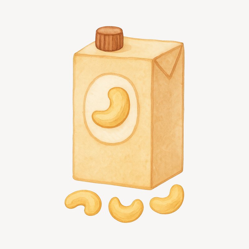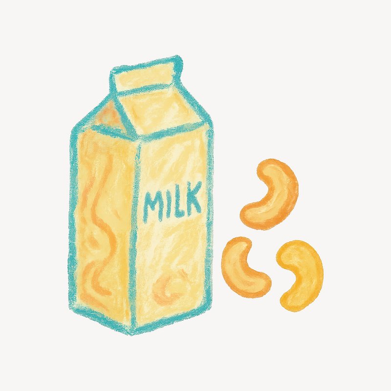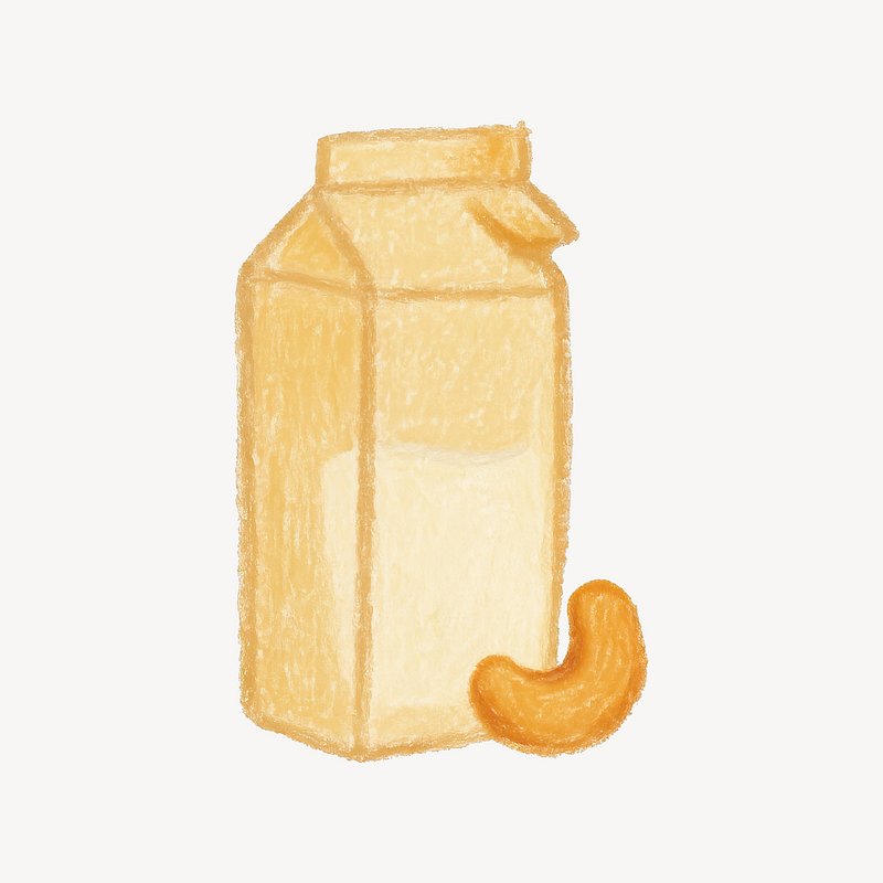 Carton of cashew milk illustration. https://www.rawpixel.com/image/19375486/carton-cashew-milk-illustrationView license