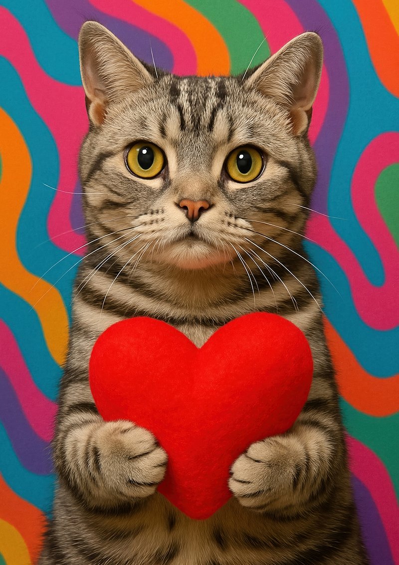 Colorful cat heart wallpaper https://www.rawpixel.com/image/18172750/colorful-cat-heart-wallpaperView license
