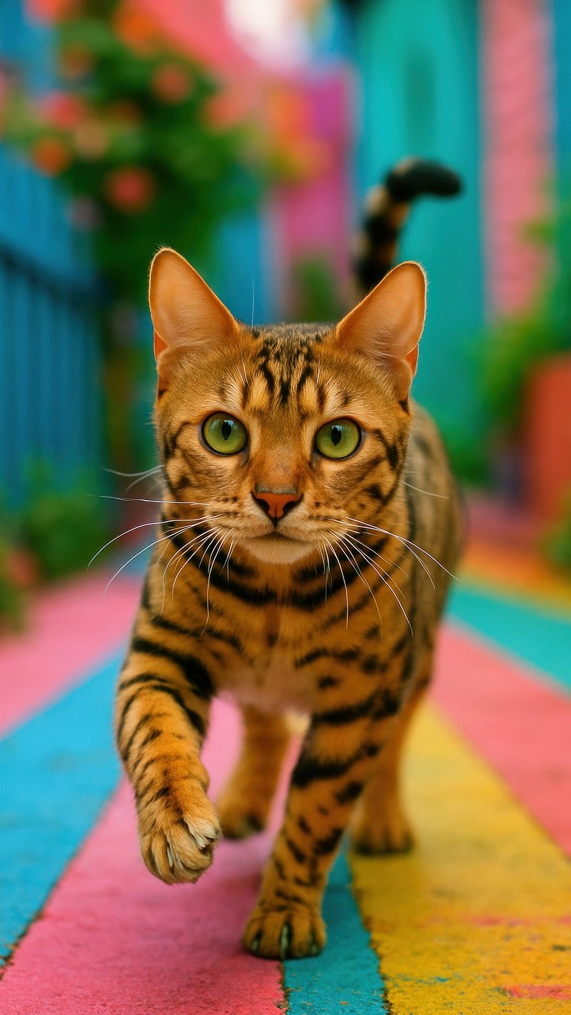 Vibrant Bengal cat striding confidently. https://www.rawpixel.com/image/17849214/vibrant-bengal-cat-striding-confidentlyView license