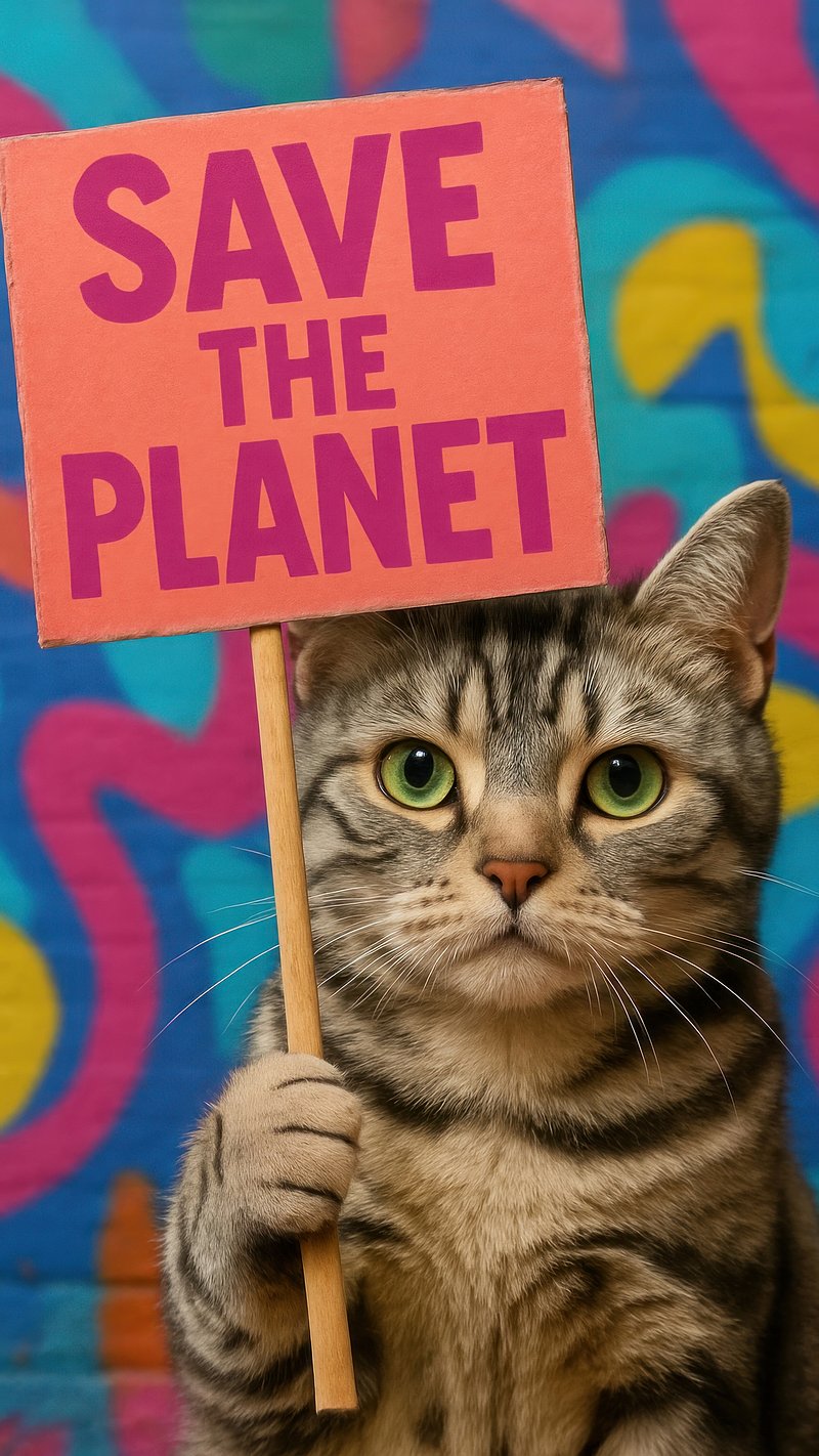 Cat holding environmental sign. https://www.rawpixel.com/image/17869787/cat-holding-environmental-signView license
