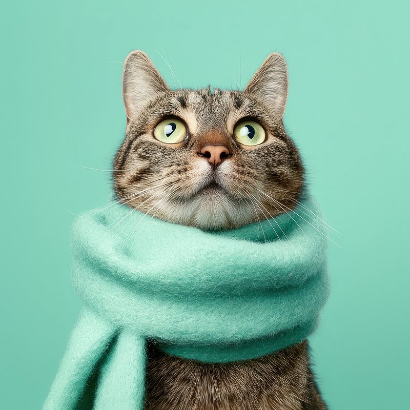 Cat wearing cozy scarf. https://www.rawpixel.com/image/23793494/cat-wearing-cozy-scarfView license