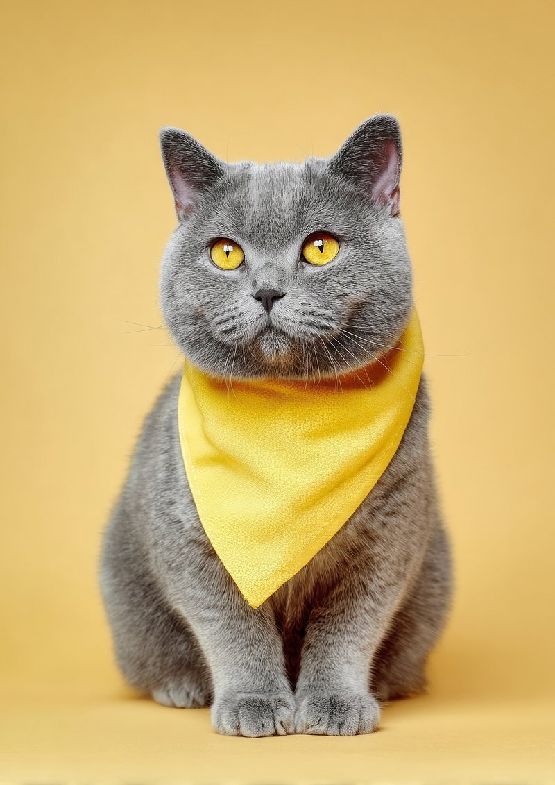 Charming cat wearing yellow bandana. https://www.rawpixel.com/image/23794013/charming-cat-wearing-yellow-bandanaView license
