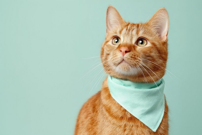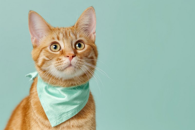 Ginger cat wearing bandana. https://www.rawpixel.com/image/23795752/ginger-cat-wearing-bandanaView license