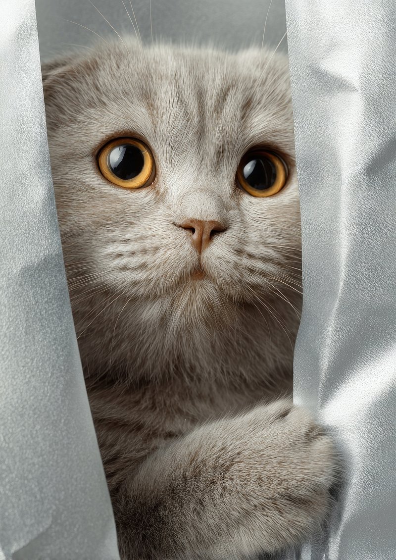 Curious cat peeking through curtain. https://www.rawpixel.com/image/23833322/curious-cat-peeking-through-curtainView license