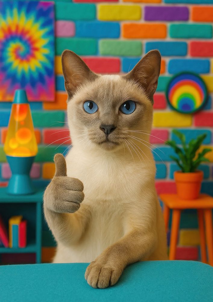 Cat approves colorful retro vibes. https://www.rawpixel.com/image/18031372/cat-approves-colorful-retro-vibesView license