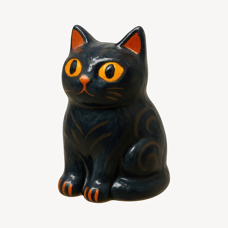 Charming black cat figurine. https://www.rawpixel.com/image/24740010/charming-black-cat-figurineView license