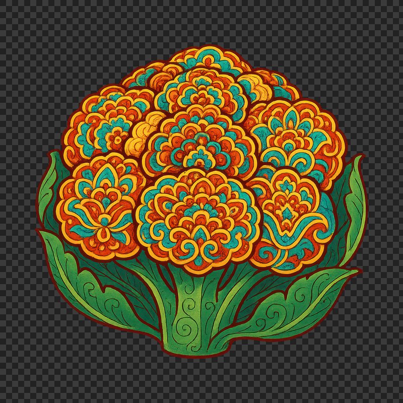 PNG Geometric cauliflower with green leaves. https://www.rawpixel.com/image/24614855/png-geometric-cauliflower-with-green-leavesView license