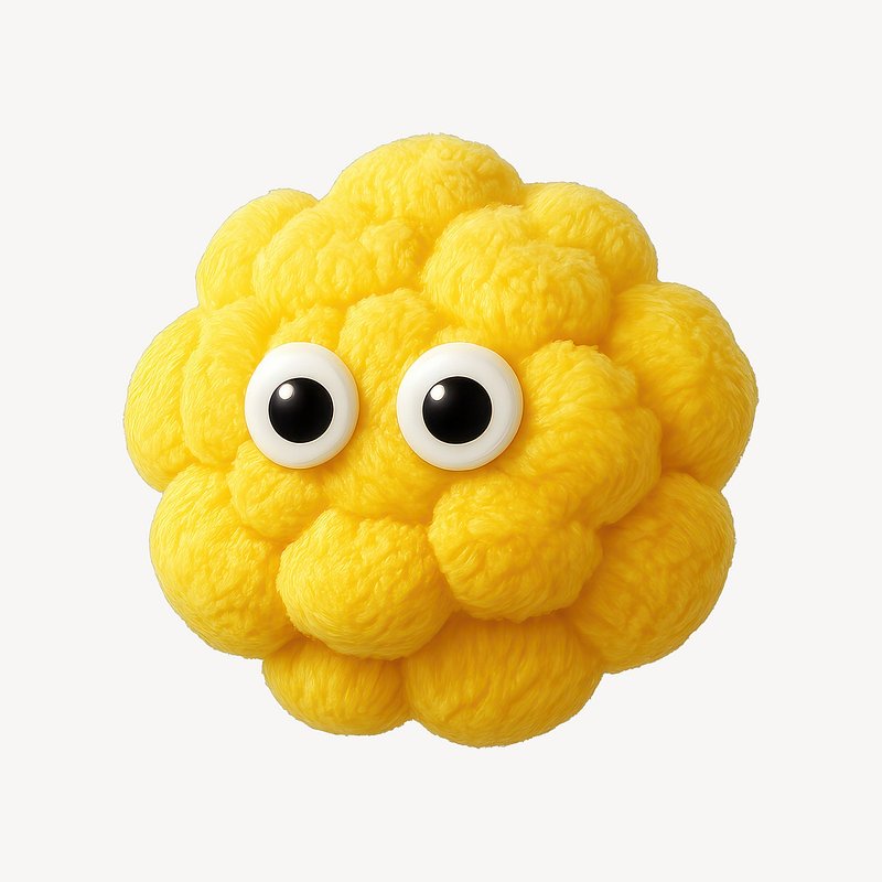 Fluffy yellow creature with eyes. https://www.rawpixel.com/image/24710330/fluffy-yellow-creature-with-eyesView license