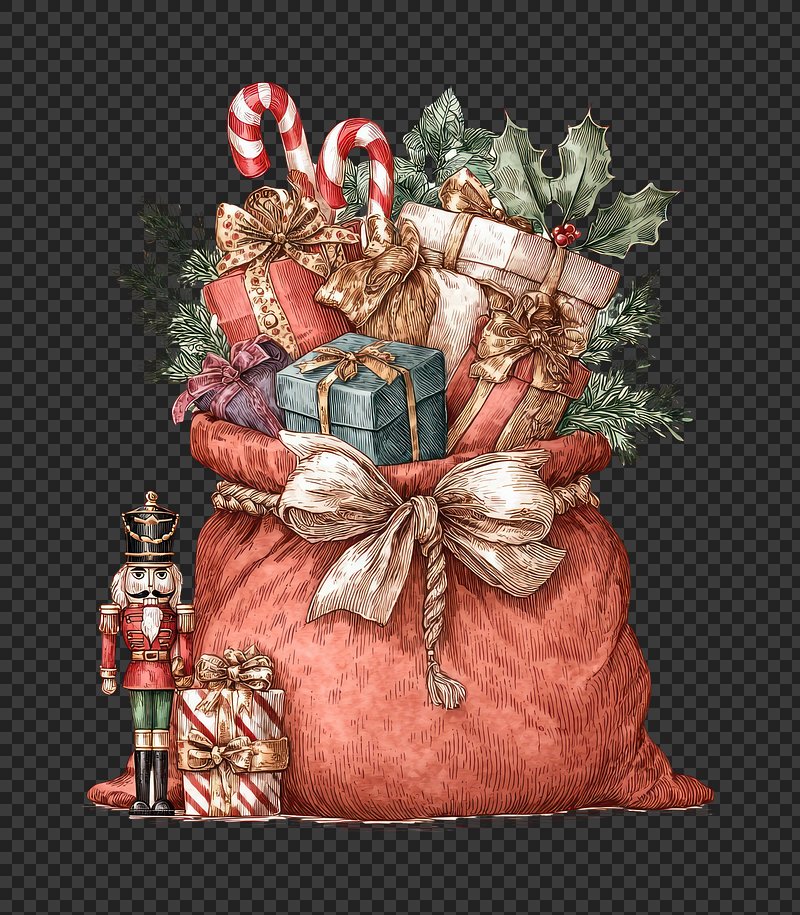 PNG Festive gifts in Santa's sack. https://www.rawpixel.com/image/22935591/png-festive-gifts-santas-sackView license