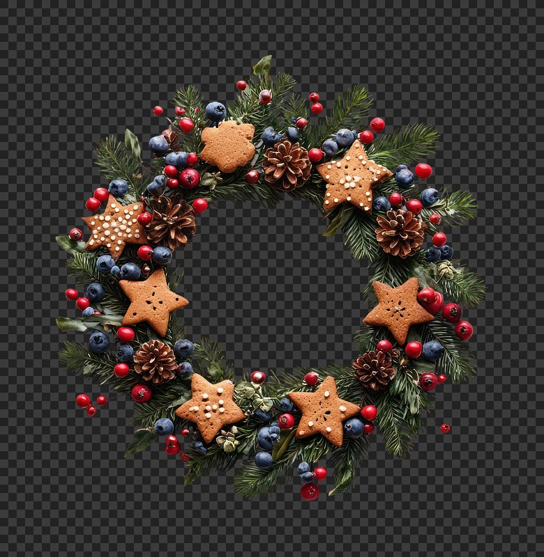 PNG Festive wreath with gingerbread stars https://www.rawpixel.com/image/22937285/png-festive-wreath-with-gingerbread-starsView license