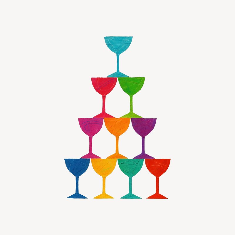 Colorful pyramid of cocktail glasses. https://www.rawpixel.com/image/22771704/colorful-pyramid-cocktail-glassesView license