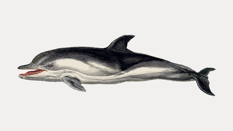 Vintage short beaked common dolphin, remix from artworks by Charles Dessalines D'orbigny vector. Remixed by rawpixel. https://www.rawpixel.com/image/16620917/vector-animal-vintage-designView license