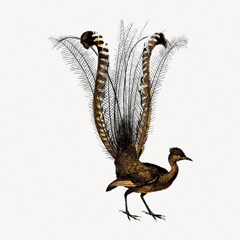 Vintage lyrebird, from artworks by Charles Dessalines D'orbigny, vector illustration isolated on white. Remixed by rawpixel. https://www.rawpixel.com/image/16889528/vector-animal-bird-artView license