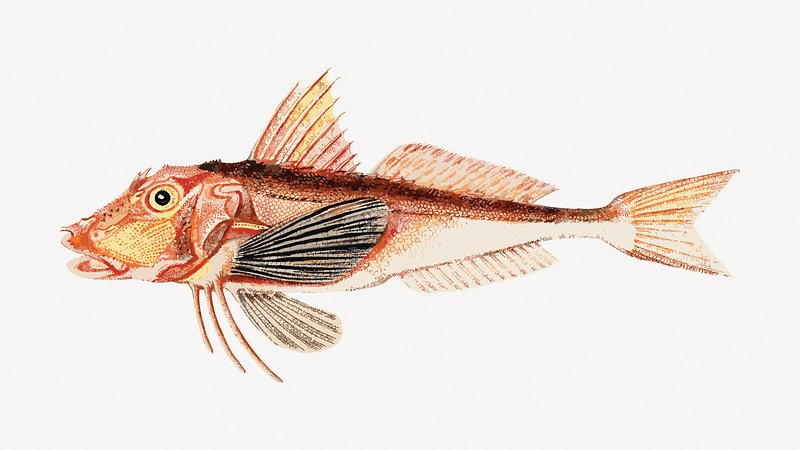 Vintage tub gurnard fish, from artworks by Charles Dessalines D'orbigny, vector illustration isolated on white. Remixed by… https://www.rawpixel.com/image/16890943/vector-animal-art-vintageView license