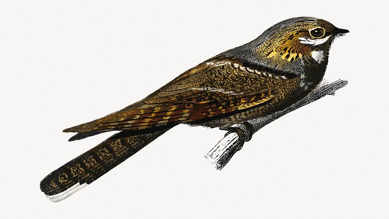 Vintage european nightjar bird, from artworks by Charles Dessalines D'orbigny, vector illustration isolated on white.… https://www.rawpixel.com/image/16889647/vector-animal-bird-featherView license