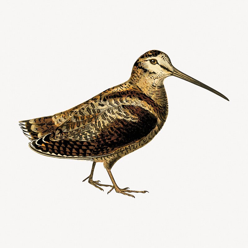 Vintage eurasian woodcock bird, from artworks by Charles Dessalines D'orbigny, vector illustration isolated on white.… https://www.rawpixel.com/image/16889616/vector-animal-bird-artView license