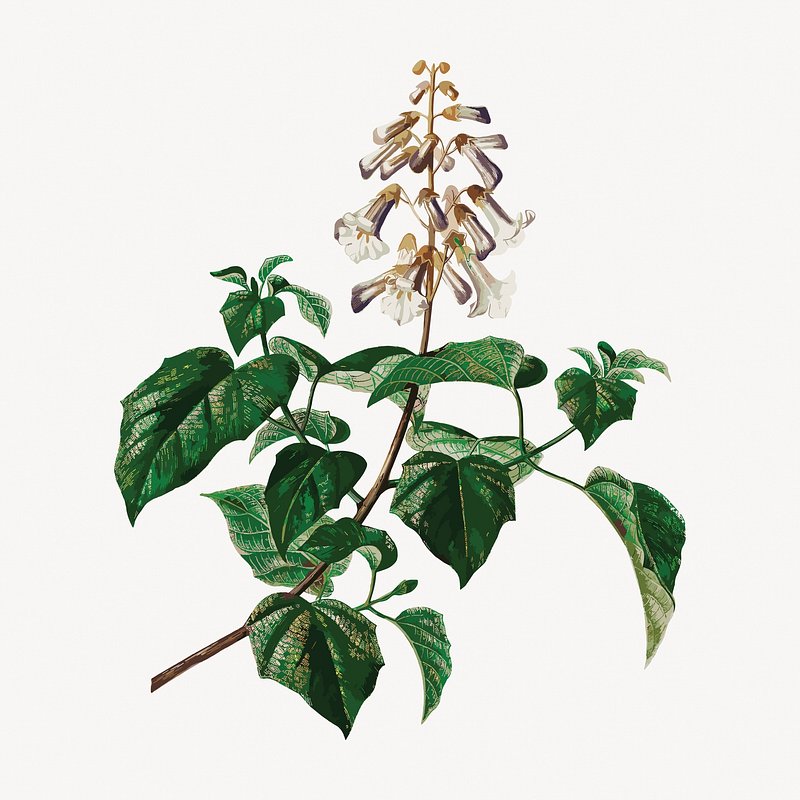 Paulownia empress tree plant, from artworks by Charles Dessalines D'orbigny, vintage illustration isolated on white, vector.… https://www.rawpixel.com/image/16891073/vector-flower-plant-artView license
